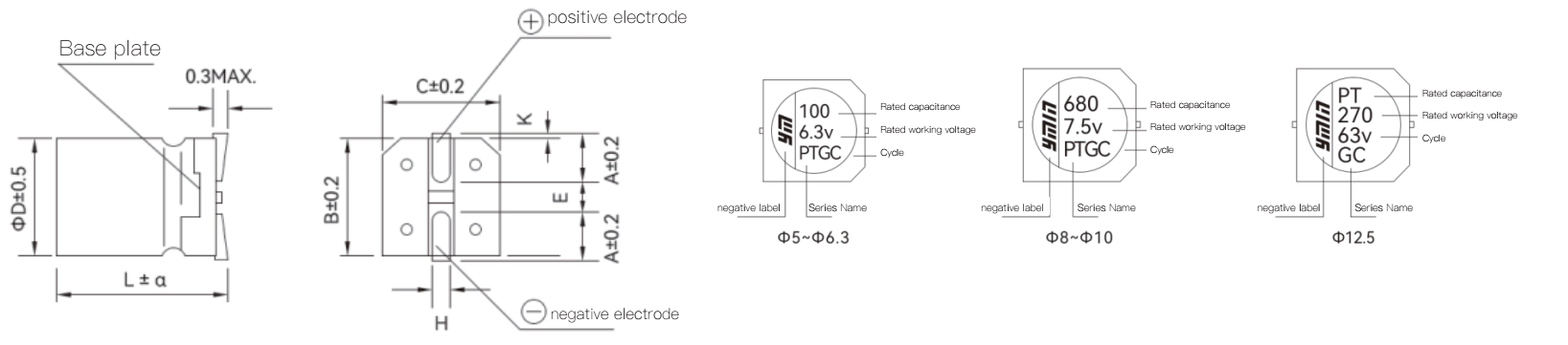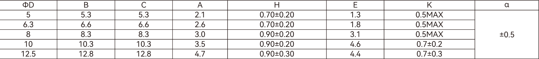 | Products Code | Temperature(℃) | Rated Voltage(V.DC) | Capacitance(uF) | Diameter(mm) | Height(mm) | Leakage current(uA) | ESR/Impedance [Ωmax] | Life(Hrs) |