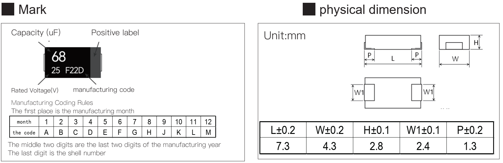 | MPD681M0ED28006R | -55~105 | 2.5 | 680 | 7.3 | 4.3 | 2.8 | 6 | 2000 | 170 |