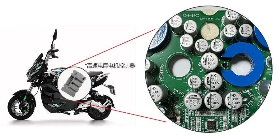 The integrated drive and control motor controller provides a highly efficient and stable driving solution for high-speed electric motorcycles, simplifying the system structure and enhancing performance and response speed. It is particularly suitable for scenarios that demand high power output and precise control. The strong seismic performance, resistance to high ripple currents, and ability to withstand ultra-high surge currents of YMIN polymer hybrid aluminum electrolytic capacitors ensure stable power output even under extreme conditions such as acceleration and high load. This guarantees the reliability and safety of the electric motorcycle.