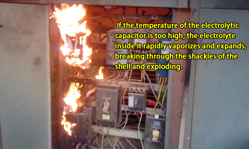 - If the temperature of the electrolytic capacitor is too high, the internal electrolyte will rapidly vaporize and expand, eventually bursting the shell and causing an explosion. The common reasons for this are: