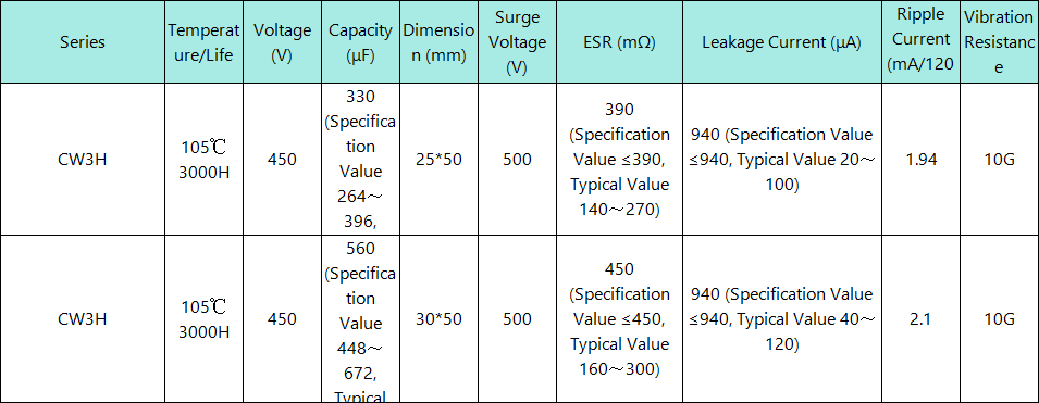 CW3H 450V 560μF 30*50; 105°C 3000H; 10G