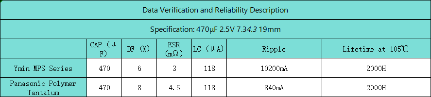 Temperature rise test: Under full load ripple current (approximately 3A), the surface temperature of ordinary capacitors can reach over 95°C, while the surface temperature of the YMIN MPS capacitors is only around 70°C, a temperature rise reduction of over 25°C. Accelerated life testing: At a rated temperature of 105°C and rated ripple current, after 2000 hours, the capacity retention rate reached >95%, far exceeding the industry standard.