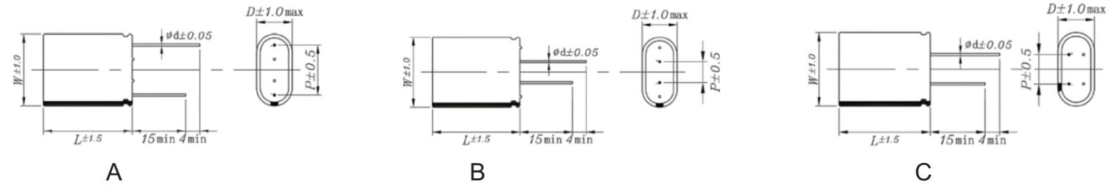 | Products Number | Working temperature (℃) | Rated voltage (V.dc) | Capacitance (F) | Width W(mm) | Diameter D(mm) | Length L (mm) | ESR (mΩmax) | 72 hours leakage current (μA) | Life (hrs) |