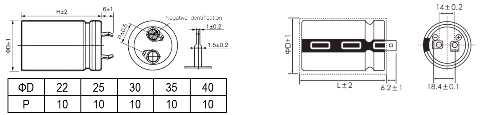 | Products Number | Working temperature (℃) | Rated voltage (V.dc) | Capacitance (F) | Diameter D(mm) | Length L (mm) | ESR (mΩmax) | 72 hours leakage current (μA) | Life (hrs) |
